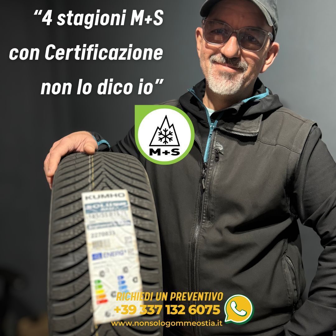 Controlla sempre il simbolo M+S e 3PMSF e consulta l’etichetta per verificare efficienza, aderenza e rumorosità.